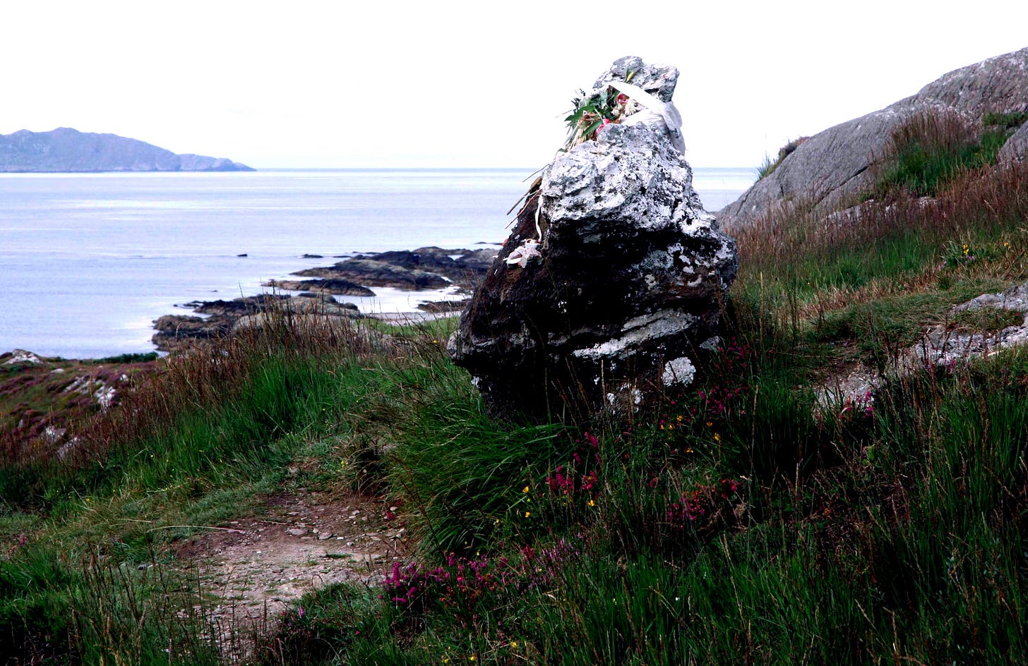 which translates to: ‘I am Ireland, the Hag of Beara’. The Hag of Beara is an ancient Celtic goddess representing the union between the land and sea: in local legend the goddess is represented by a rock formation on West Cork’s Beara pennisula facing into the full force of the Atlantic Ocean .